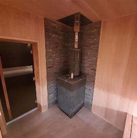 Банная печь ИзиСтим Сочи в кожухе из талькохлорита под ключ (05.2021)
