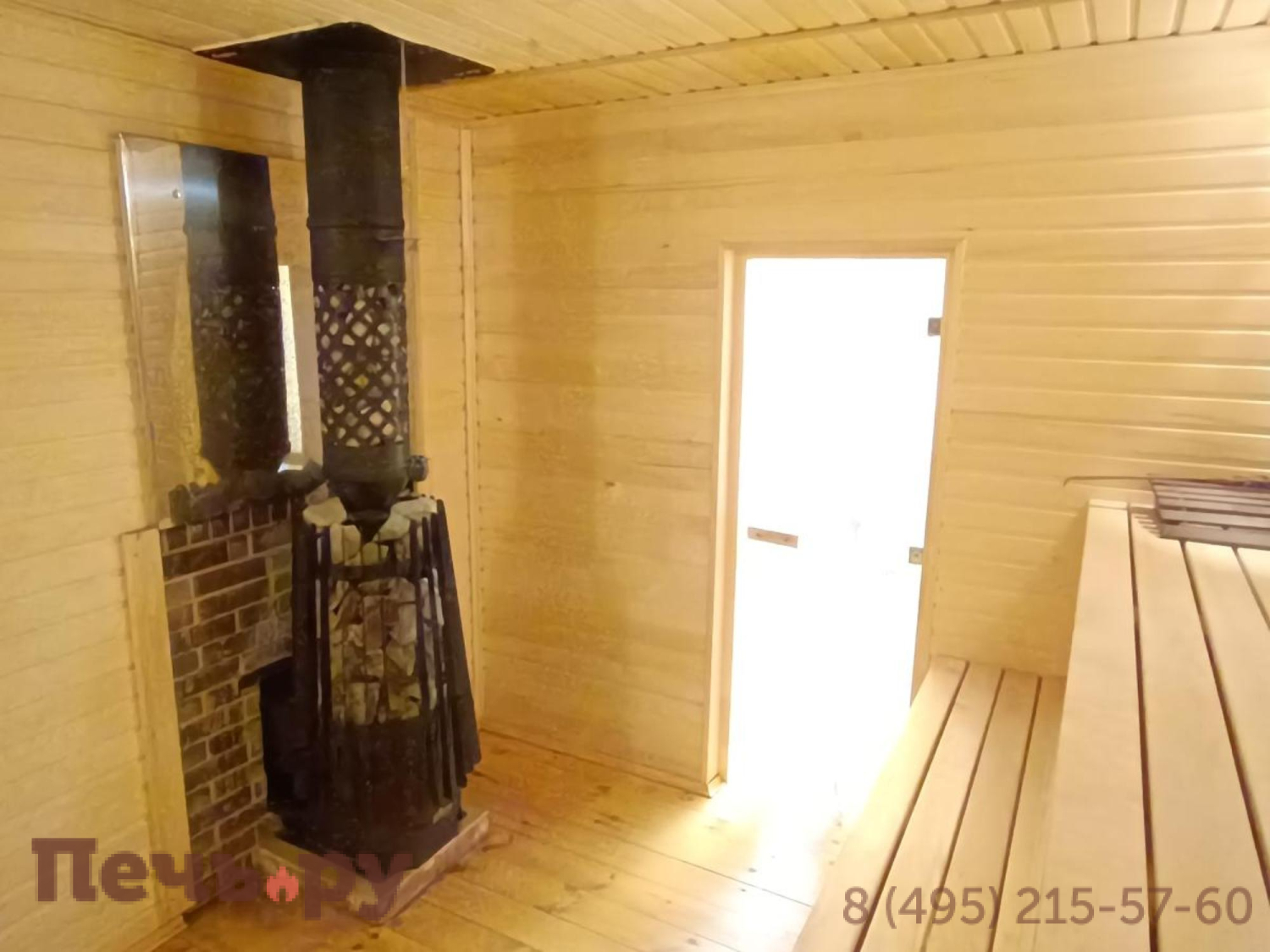 Сетка из стали, материал корпуса - чугун ЧХ-1. Колосник, зольник, паровая пушка, выносной туннель, режимы - русская баня, сауна, хамам.