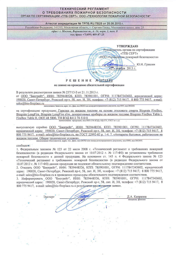 Инструкции, чертежи, документы - Механическая горелка Biograte LongFire 1500 для биокамина