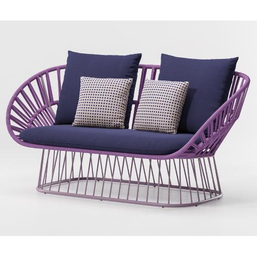 Cala - это диван с плетеной спинкой, который может использоваться для отдыха и общения на открытом воздухе. Широкий выбор металлических покрытий, цветов каната и тканей подушек предлагает множество возможностей для воплощения индивидуального дивана в соответствии с различными проектами.