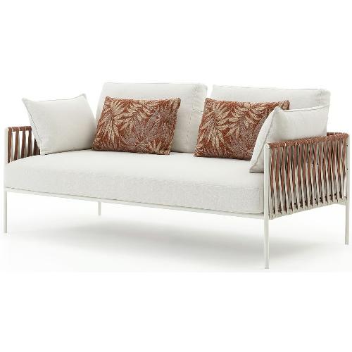 Основой служит прочный каркас из нержавеющей стали с порошковым покрытием, дополненный эластичными стропами для оптимального комфорта. Водоотталкивающие подушки с наполнителем в защитной мембране обиты тканью из перерабатываемых нитей Olyna™. Декоративное плетение выполнено двухцветными плоскими шнурами или косичками из того же износостойкого материала, подходящего для интерьера и улицы.