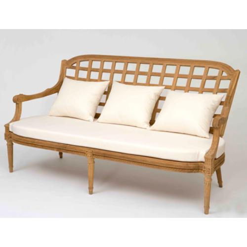 - Диван выполнен с резьбой в стиле Людовика XVI, который представляет собой нечто среднее между рококо и классицизмом. Предпочтение отдается прямым линиям, господствует ясность и гармоничность пропорций, декор лаконичен. Присутствуют античные орнаментальные мотивы, обогащенные реалистически трактованными цветами и ветвями. Мебель стиля Людовика XVI характеризуется простой и спокойной формой, строгой геометрией, прямыми длинными ножками и завышенными каннелюрами.