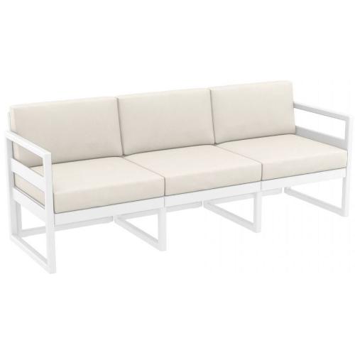 Диван пластиковый трехместный с подушками Siesta Contract Mykonos XL (белый, бежевый)