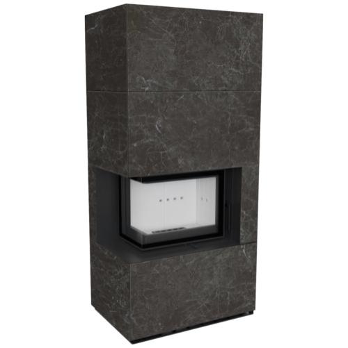Каминокомплект Kratki Pro Floki в облицовке Naturali Nero Greco, угловое стекло слева (светлая футеровка)