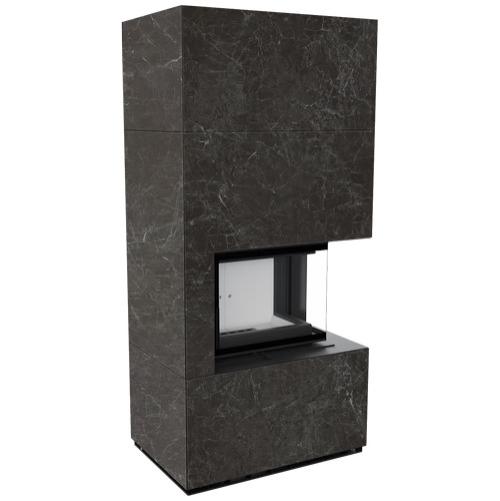 Каминокомплект Kratki Pro Floki в облицовке Naturali Nero Greco, угловое стекло справа (светлая футеровка)