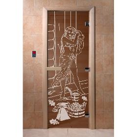 Дверь для бани DoorWood Дженифер 1900х700, 8 мм, 3 петли, коробка - ольха