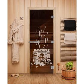 Дверь для бани DoorWood Эталон с рисунком 1900х700, 10 мм, 3 петли, коробка - листв. порода