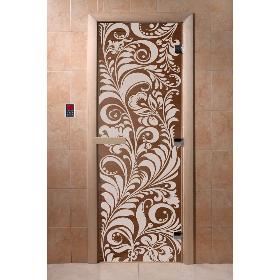 Дверь для бани DoorWood Хохлома 1900х700, 8 мм, 3 петли, коробка - ольха