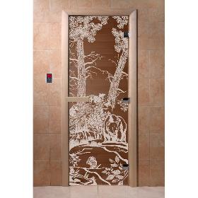 Дверь для бани DoorWood Мишки 1900х700, 8 мм, 3 петли, коробка - ольха