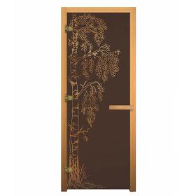 Дверь для сауны стеклянная Бронза Матовая Березка 1900х700мм (8мм, 3 петли 716 GB) (Магнит) (Бук) (правая)