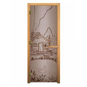 Дверь для сауны стеклянная Сатин Матовая Банька 1900х700мм (8мм, 3 петли 710) (Магнит) (Бук) (правая)
