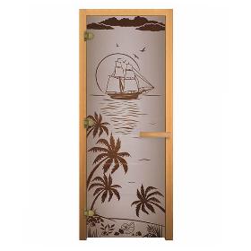 Дверь для сауны стеклянная Сатин Матовая Лагуна 1900х700мм (8мм, 3 петли 710) (Магнит) (Бук) правая