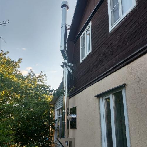 Подключение дымохода Дымок 150/230 мм (верхнее подключение, выход через стену) материалы + установка