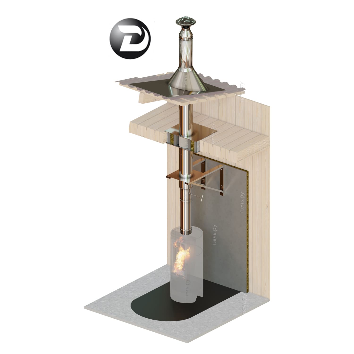 Инструкции, чертежи, документы - Комплект дымохода Дымок, нержсталь, проход через крышу, верхний выход