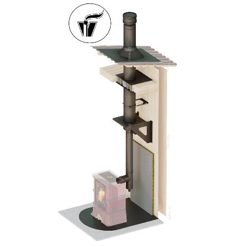 Инструкции, чертежи, документы - Комплект дымохода Вулкан, нержсталь, черный, проход через крышу, задний выход