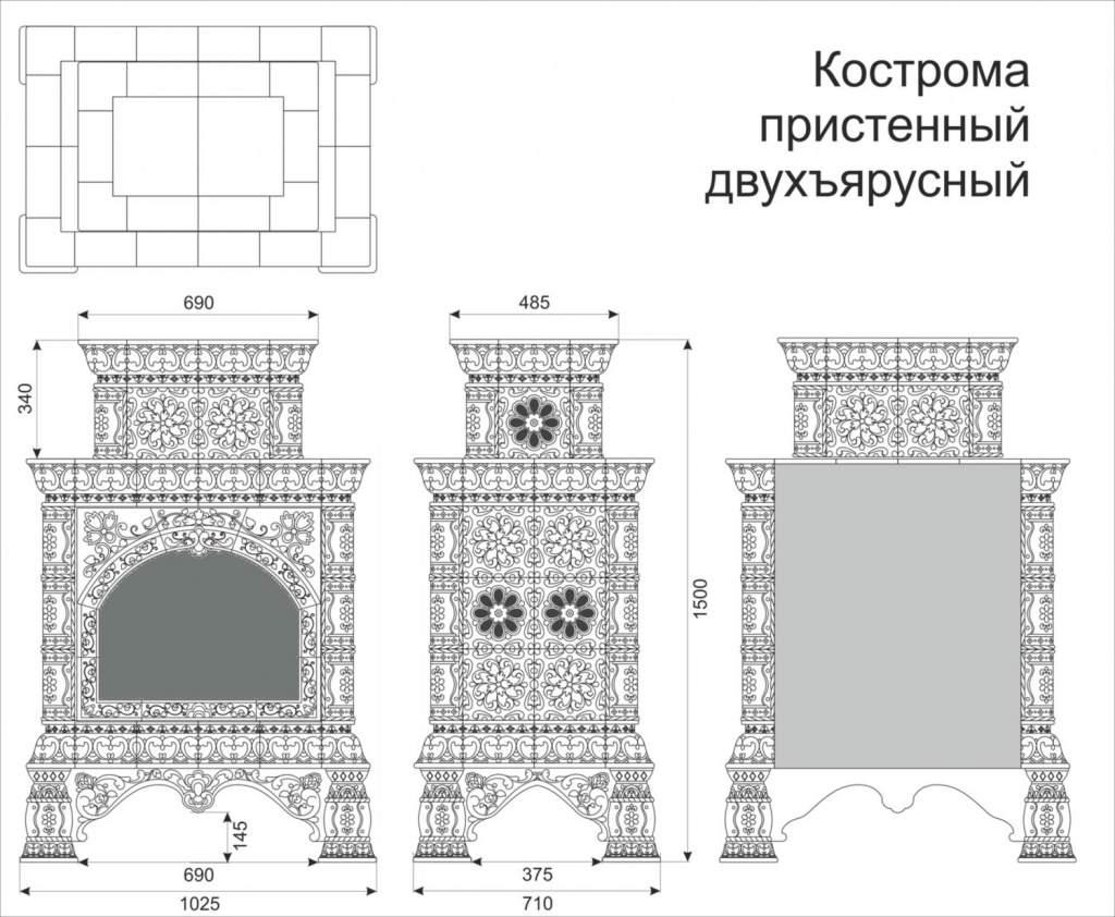 Инструкции, чертежи, документы - Готовый камин КимрПечь Кострома-Д пристенный-двухъярусный