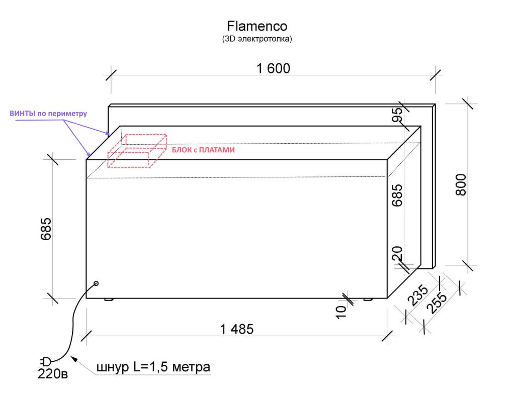 Инструкции, чертежи, документы - Электроочаг Glenrich Flamenco 3D
