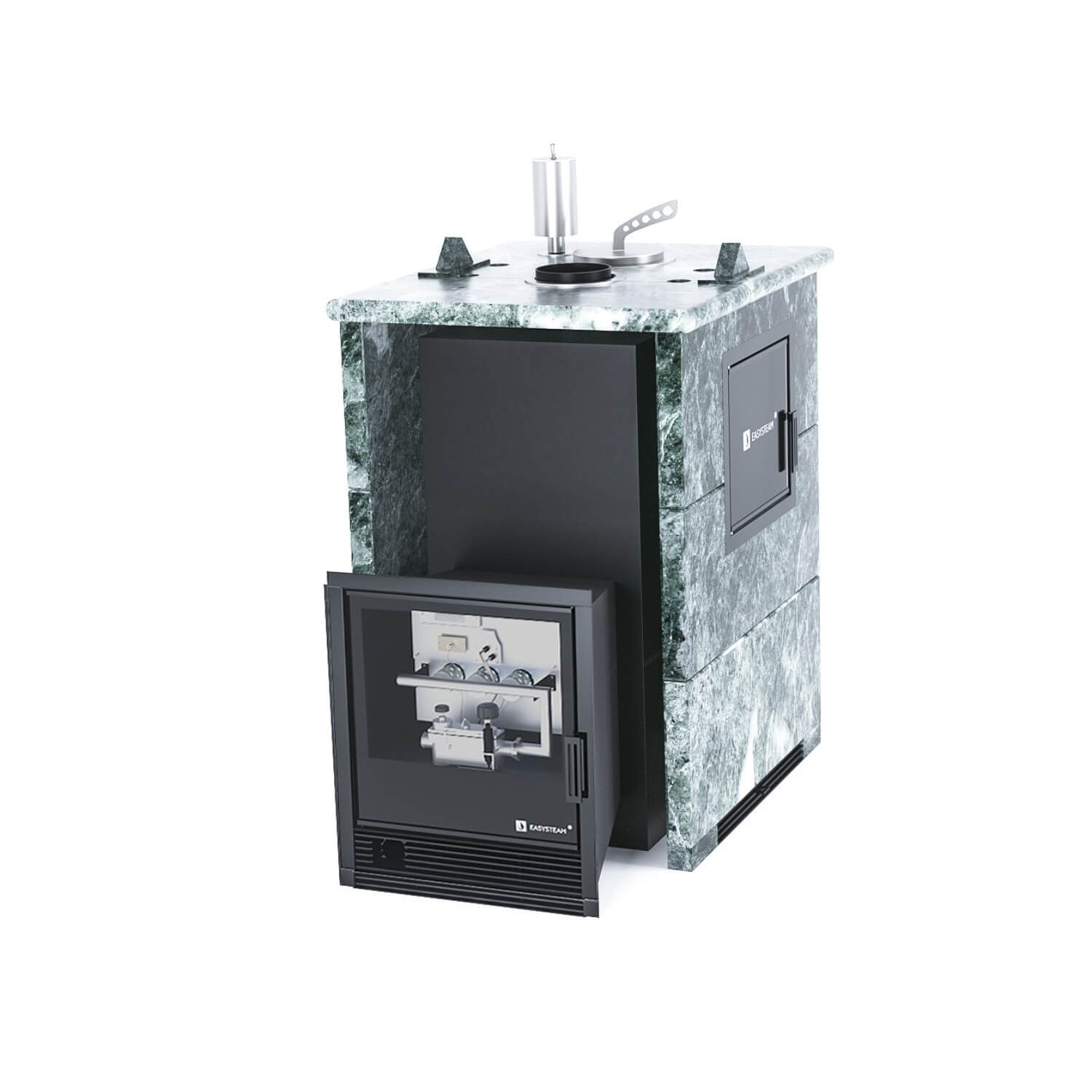 Банная печь ИзиСтим Анапа М2 в трехстороннем кожухе Змеевик с газовой горелкой (САБК-40)