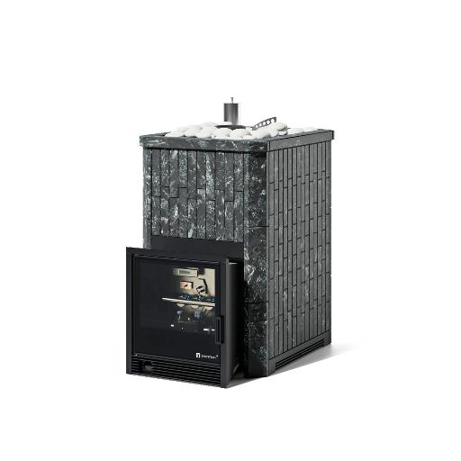 Банная печь Изистим Анапа в наборном полноценном кожухе Пироксенит с открытым верхом с газовой горелкой (САБК 40)