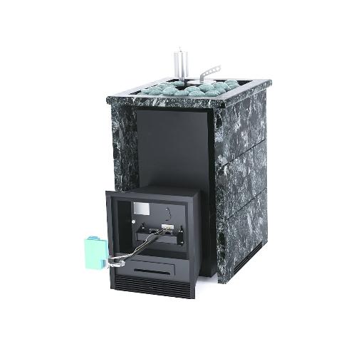Банная печь ИзиСтим Анапа в трехстороннем кожухе Пироксенит с открытым верхом и газовой горелкой (ГГУ-40)