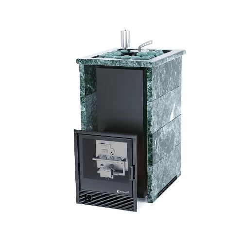 Банная печь ИзиСтим Сочи в трехстороннем кожухе Змеевик с открытым верхом с газовой горелкой (САБК-40)