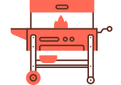 4 экономичные высокопроизводительные горелки с максимальной тепловой мощностью 4 кВт каждая. Под горелками 3 аромапластины. Съёмный поддон. Пъезоподжиг. Решетка из нержавеющей стали. Столик боковой с инфакрасной горелкой.