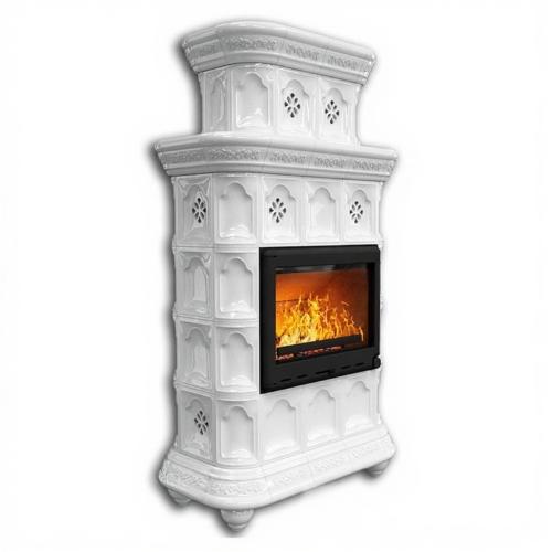 Готовый камин КимрПечь Истра двухъярусный центральный с топкой Астов МЛ 700 (белый)
