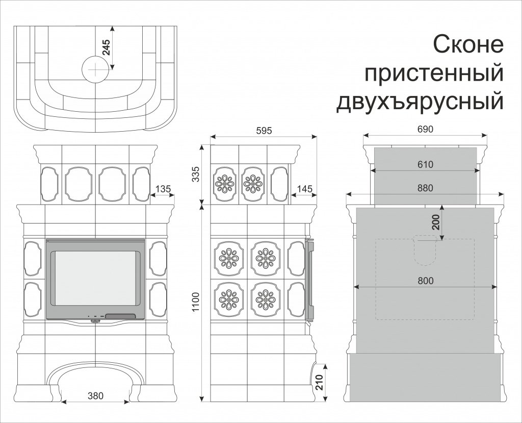 Инструкции, чертежи, документы - Готовый камин КимрПечь Сконе пристенный-двухъярусный