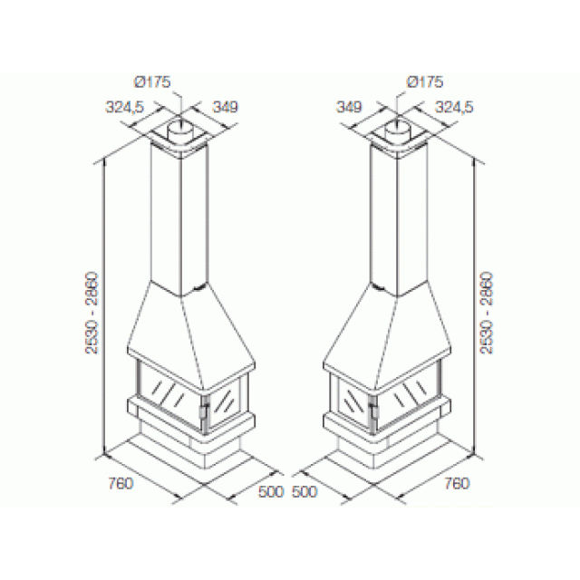 прямоугольную форму, дымоход с выходом сверху и пристенное расположение. Труба дымохода скрыта под металлическим кожухом, который завершает стильный образ