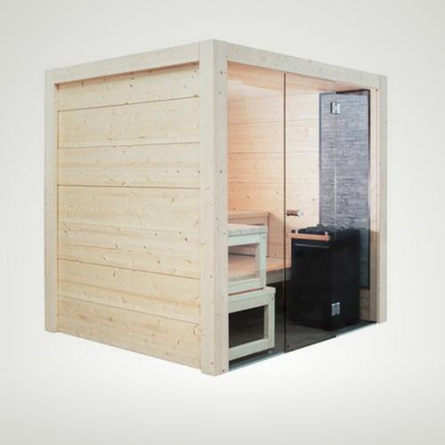 Стены, потолок и полки сауны выполнены из массива малосучковой финской ели. Специальная запатентованная структура массива хорошо выдерживает влажность и высокую температуру бани, а также обеспечивает первоклассную прочность и теплоизоляцию.