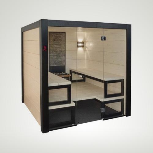 Стены, потолок и полки сауны выполнены из массива малосучковой финской ели. Специальная запатентованная структура массива хорошо выдерживает влажность и высокую температуру бани, а также обеспечивает первоклассную прочность и теплоизоляцию.