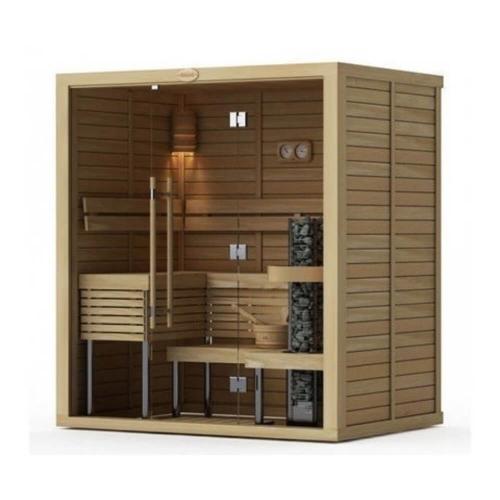 Сауна в сборе Sawo 1420ML-WA-G (1,4м х 2,0м, осина, полностью стеклянная стена, дизайн Wave)