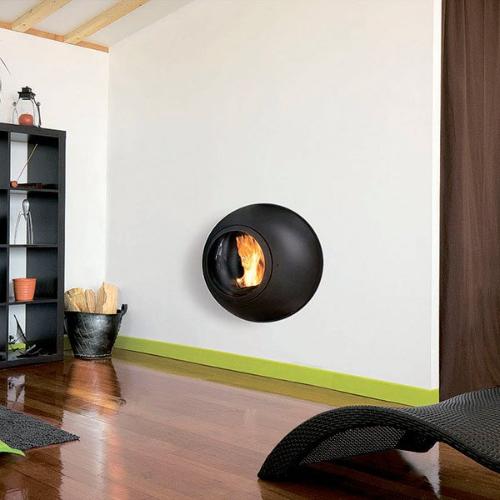 Готовый камин Focus Emifocus с выпуклой стеклянной дверцей, труба в стене (чаша камина)