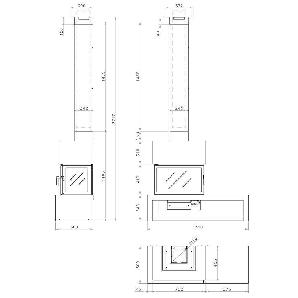 - Диаметр дымохода, мм 180