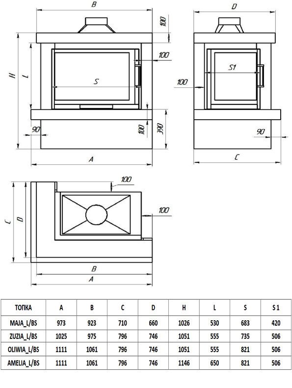 Инструкции, чертежи, документы - Каминная облицовка FireBird Ладога (для топки Amelia/LP/BS) (угловое стекло слева-справа)