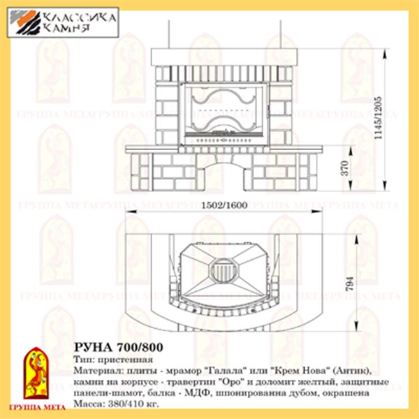 Инструкции, чертежи, документы - Каминная облицовка Руна 800 серия Магия Огня
