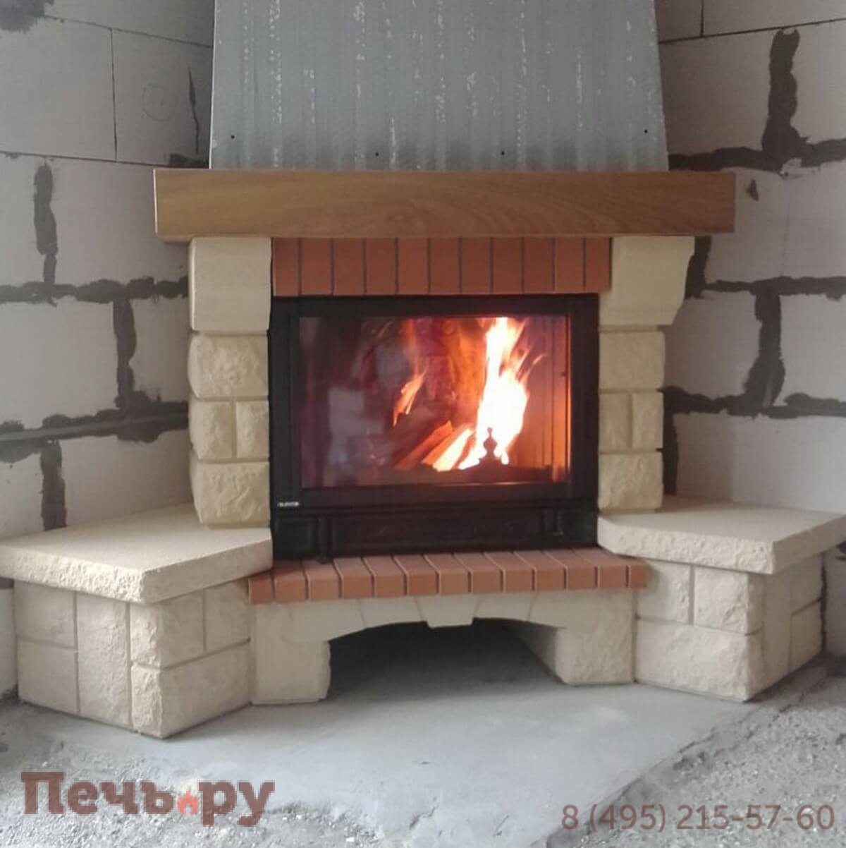 Каминная облицовка Supra Russia Bolero SR, желтая, с деревянной балкой