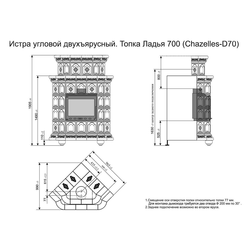 Облицовка камина КимрПечь Истра двухъярусный угловой для топок 600 (белый)