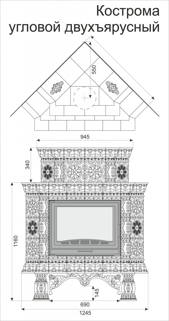 Инструкции, чертежи, документы - Облицовка камина КимрПечь Кострома угловой-двухъярусный для топок 600