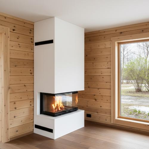 Камин подходит для монтажа в домах с деревянными стенами и перекрытиями