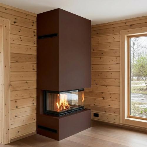 Камин подходит для монтажа в домах с деревянными стенами и перекрытиями