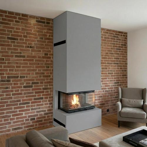 Камин трехсторонний с топкой Астов П3С 8457 в кирпичный дом (премиум)