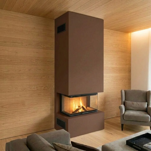 Это стильное и безопасное решение для интерьера — камин с топкой и облицовкой из негорючего материала на основе силикатов кальция. Прочная конструкция обеспечивает высокий уровень пожарной безопасности, а внешняя отделка из современных финишных материалов придаёт коробу эстетичный вид. Возможность окраски в любой цвет из палитры позволяет идеально вписать камин в любой дизайнерский проект — от классики до урбанистического лофта.