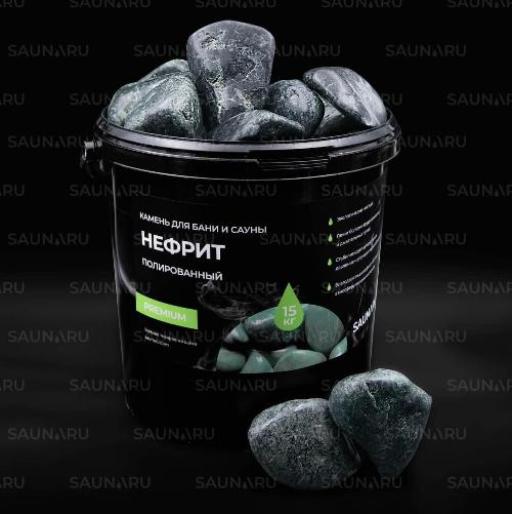 Камни для сауны Saunaru Нефрит шлифованный Premium, фракция до 100 мм, ведро 15 кг
