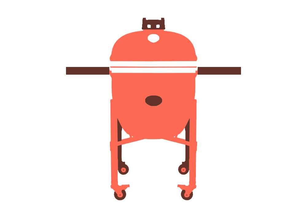 Pro набор. Керамическая чаша для угля. Уплотнительный шнур из стекловолокна. Корзина для угля. Стальная решетка. Термометр. Отверстие под дозатор для щепы. Зольный ящик. Дымоход с крышкой от дождя. Крепкие петли. Бамбуковая ручка.