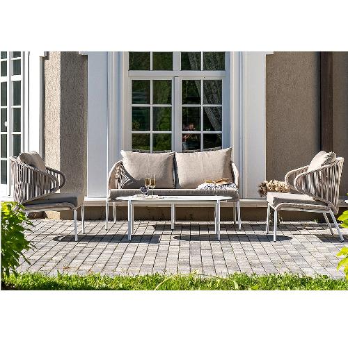 Лаунж-зона 4SiS Милан 4-местная плетеная из роупа (веревки), каркас алюминиевый белый, роуп бежевый