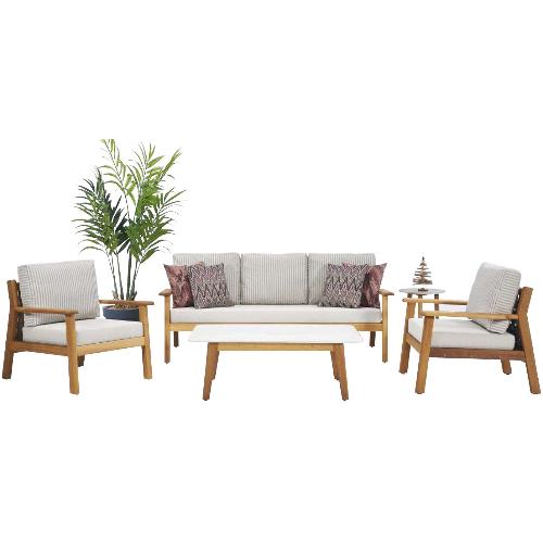 Rodos представляет собой комплект, рассчитанный на 5 персон, состоящий из 2-х кресел, трехместного дивана и кофейного столика, которые обеспечивают удобство и комфорт во время сидения. Комплект обладает приятным дизайном, который придает ощущение гостеприимства и теплоты. Максимальное удобство обеспечивают мягкие подушки из материалов для применения на улице. Комплект предназначен для использования на улице: летние площадки различных заведений, частные террасы, дворики загородных домов. Он дает возможность с наслаждением проводить время на свежем воздухе.