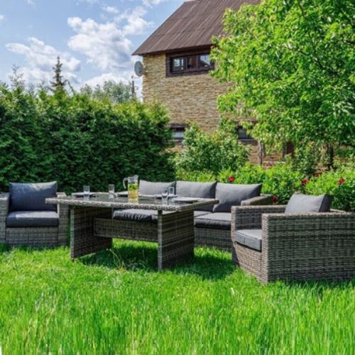 Все элементы мебели изготовлены из качественных материалов: металлокаркас и искусственный ротанг. Ротанг - это прочный и легкий материал, который не требует особого ухода и отлично переносит воздействие внешней среды. Металлокаркас обеспечивает прочность и стабильность всего конструкта.