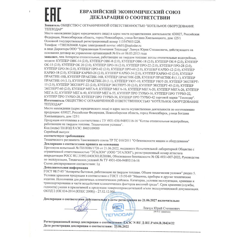 Инструкции, чертежи, документы - Котел твердотопливный Теплодар Куппер Эксперт 30
