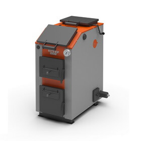 В качестве топлива может использоваться уголь, дрова, топливные брикеты. В конструкции котла также предусмотрена возможность установки пеллетной или газовой горелок.